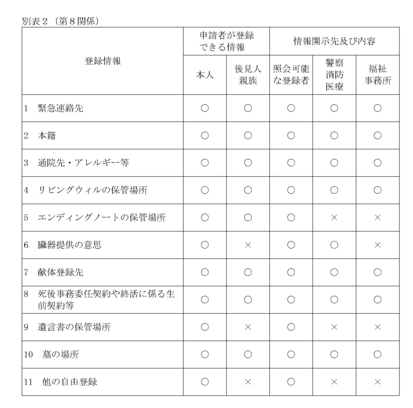 申請者が、登録できる情報及び情報開示先と内容については、別表2(最下段)をご覧ください。