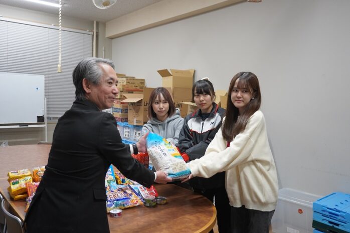 甲府商科専門学校生徒会の皆様とご寄付いただいた食料品